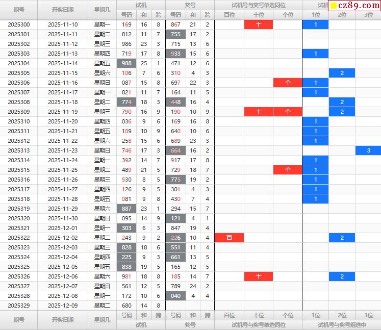 首页 > 福彩3D预测 > 25年329期福彩3D试机号走势图表分析